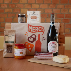 Aprire la tendina qua sotto per selezionare la confezione regalo: shopping bag Mercà in tela o scatola in legno Mercà